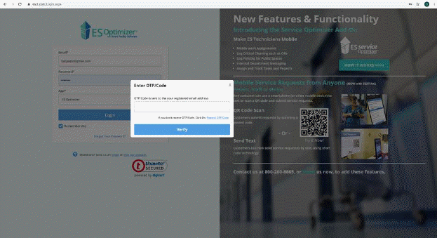 ES Optimizer and Survey Optimizer for Web and ES Optimizer Mobile, Survey Optimizer Mobile, ES Service Optimizer Tech Mobile, and Sterile Trakks Mobile now offer the ability to require 2 factor authentication when signing into the software via a one time passcode (OTP). If you are interested in implementing this or other security procedures please contact us at 800-260-8665 Option #2 for Technical Support.