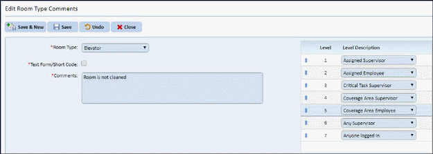 a Room Type Comment click on the Add Room Type Comment button