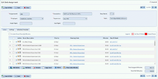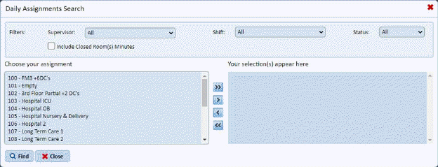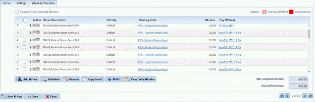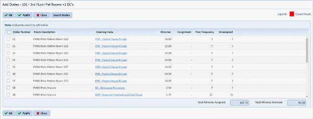 NOTE: If you wish to display the Daily Assignment with the closed room minutes inbcluded in the total minutes please check the box provided.