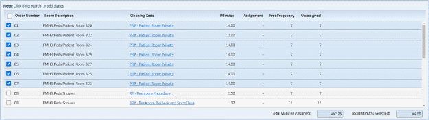 11. Repeat steps 3 through 8 for all other duties/rooms you want to add to your assignment. Please keep track of the Total Minutes Assigned and the Total Minutes Selected.