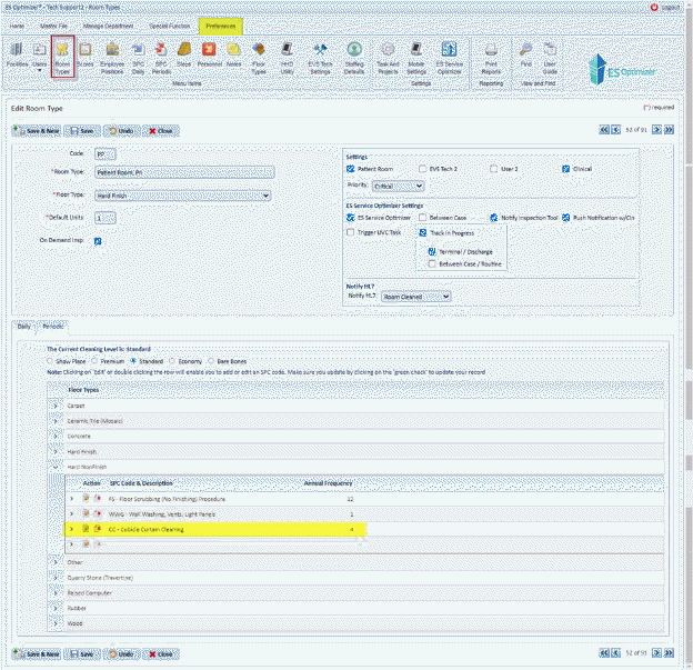 The following steps could be used to add a periodic SPC to all Patient Room, Pri rooms with Hard Finished floors and enable it to be performed during the daily room clean.