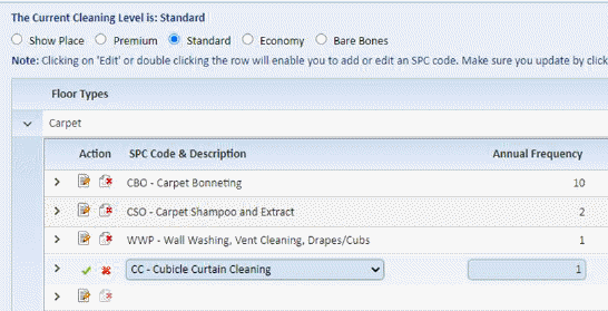 If the “CC” code was not present, you may add it to the room type using the edit icon, select the SPC Code “CC” and click the green checkmark as shown below: