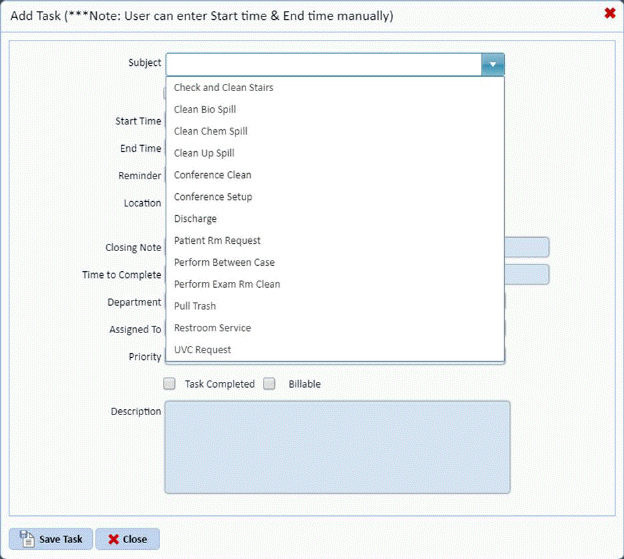 Notice that the Subject field allows the user to enter their own subject or choose one from a list of “common tasks” or you can type in any task title you desire.