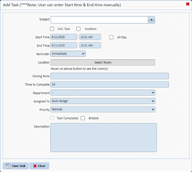 Note: The Auto Assign feature allows the automation of the task to assigned employee via Daily Assignment or Coverage Area. User may also select a user to assign the task to manually.