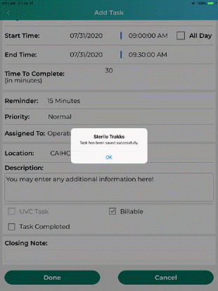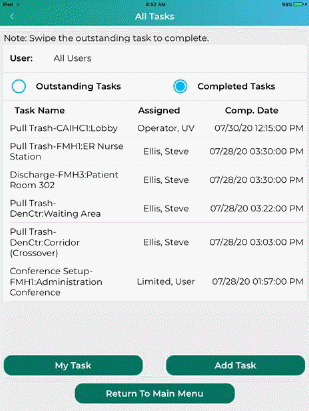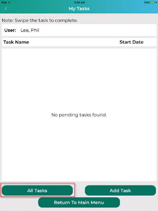 If User is a Supervisor the “All Tasks” button will be shown. User is also able to view completed tasks by tapping the Completed Tasks radio button as shown below: