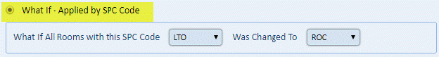This option allows you to create what if scenarios based on the SPC codes of the rooms.