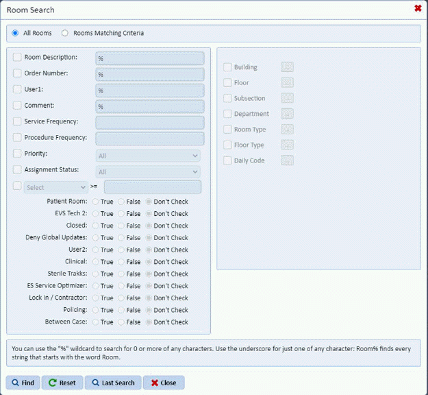 Specify criteria for the rooms to update. Click on