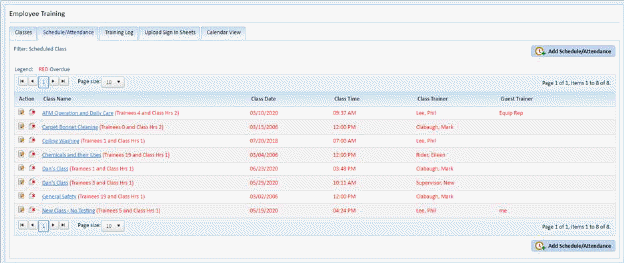 1. In the Employee Training Module, click on the Schedule/Attendance Tab. You will open the figure below: