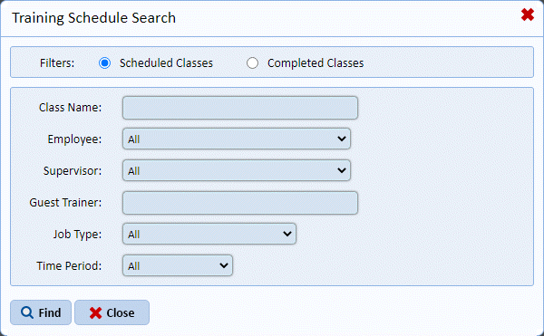 Note: You may also choose “Completed Classes” to view the classes completed for the search criteria you specify.