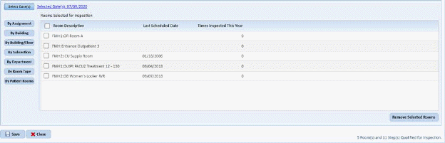 NOTE: The number listed in the Default Rooms field will be the number of rooms for one date only. If several dates are selected for inspection dates, the number of rooms in the Rooms Selected for Inspection table will be divided between the selected dates.