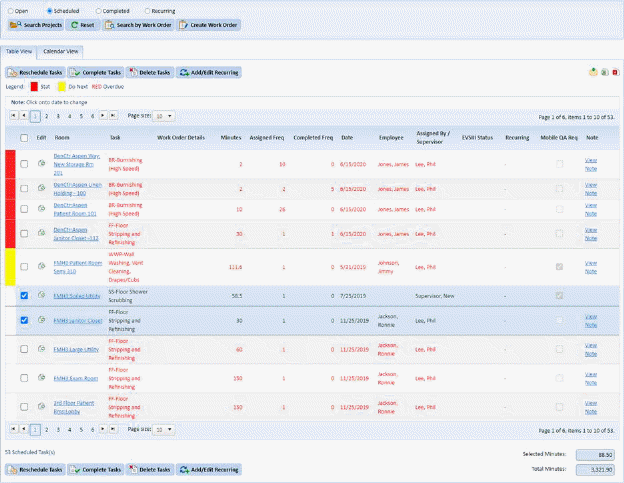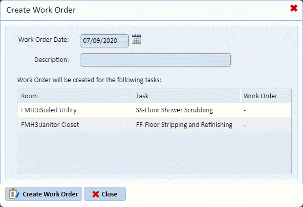Creating Work Orders in ES Optimizer is a simple process. You can search your projects and clear by work order. Users can create work orders from existing scheduled rooms or tasks. Below is the process to create work orders from existing scheduled tasks: