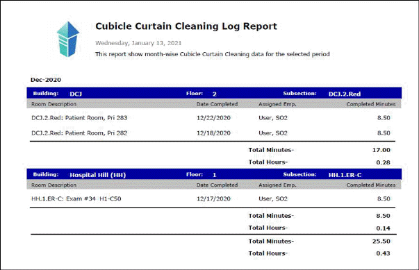- This report shows month-wise Cubicle Curtain Cleaning data for the selected period.