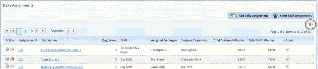 With the List format of how data is now presented in ES Optimizer, we have developed the Web Page Export function to allow data in several forms/modules to be exported to Excel spreadsheets or PDF format. The Daily Assignments Module takes that functionality further.