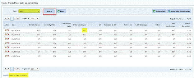 Note: As sterilizations occur they will be included as “Completed” as shown in the highlighted entry above. In the above example there were 20 discharges that day and one UVC disinfection performed in the category “Other Discharges”.