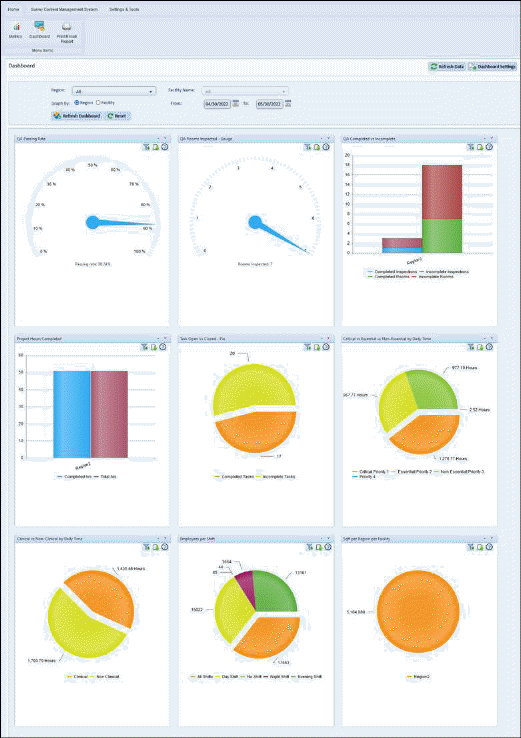 - Graphs can be filtered by regions and facilities.