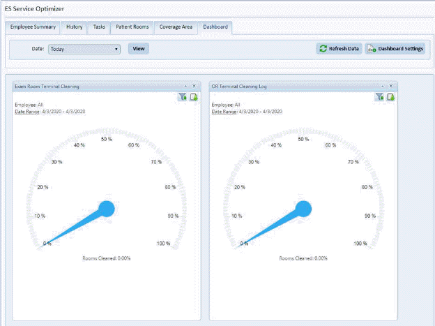 The Dashboard Tab works like the original Dashboard of ES Optimizer. This tab shows graphs relating to ES Service Optimizer.