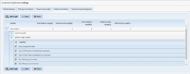 Note: To Add a graph see ES Service Optimizer Settings Form