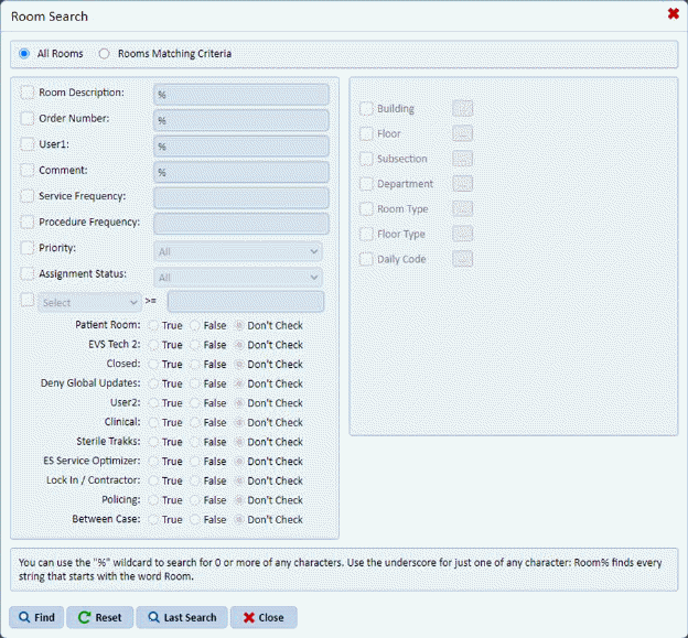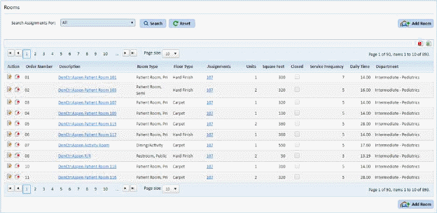 The process of removing room records from your database is similar to the process of removing employee records presented in the Employees List. If you delete a room record from ES Optimizer, it is important to note that it will affect any and every piece of history (inspections, assignments, schedules, etc.) created that contained that room record.