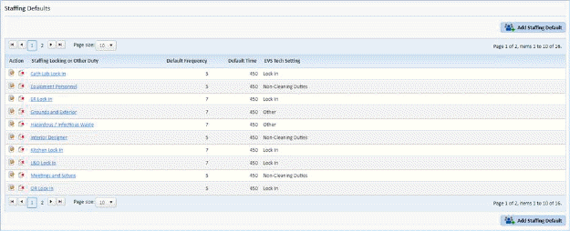 NOTE: If the Staffing Default is “in use,” the user will not be able to delete that record.