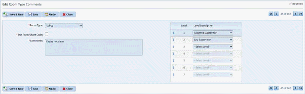 1) Locate the Room Type for which you would like to edit comment, levels or both.
