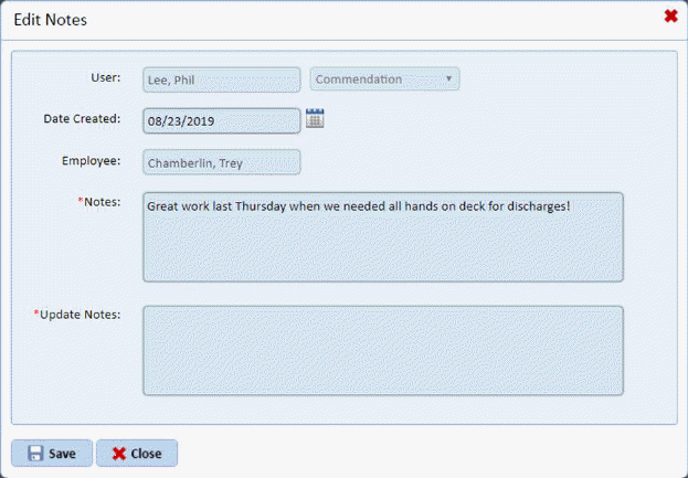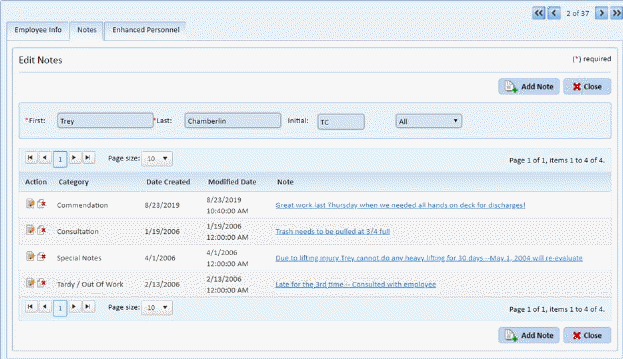 8. Repeat steps 5 through 7 for additional notes for the same employee.