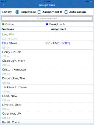Whether the supervisor is sending a text message or assigning a task, he/she can tell if the employee they have in mind is on break or not. Note: Employee will receive message and or task despite being on break/lunch.