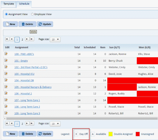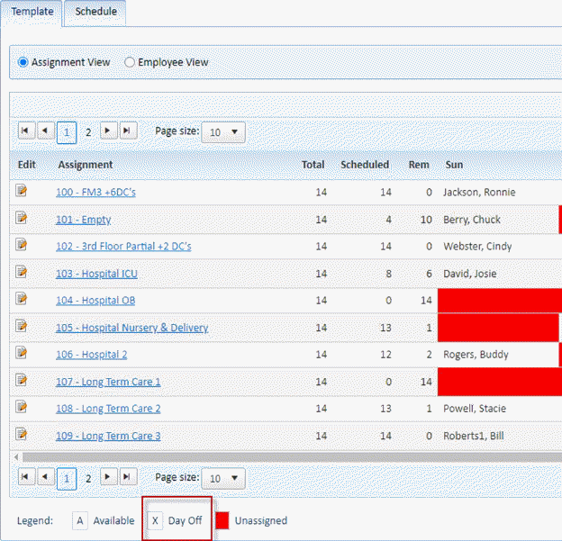 Now you will be able to tell when working in the schedule/ template the difference between a day the employee isn’t scheduled in a Daily Assignment and their “Day Off”