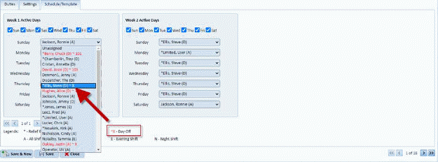 You will also notice a change in the Personnel Module Schedule and Template tab where the legend also includes the Day off indicator as shown in the template tab below: