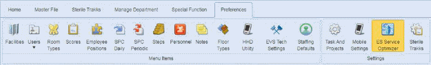 The ES Service Optimizer button in the Preferences tab opens the Module below: