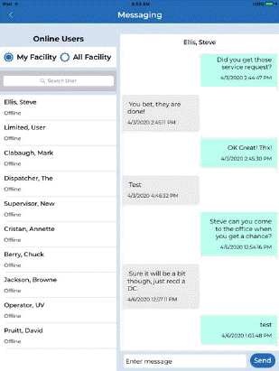 Messaging – This button opens the messaging system. This allows the user (supervisors) to send text messages to other users (employees/supervisors). Users can track who sent the latest message and how many messages have been sent when users are “online.” User who sent the latest message will be shown at the top of the list of Online Users.
