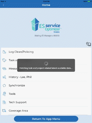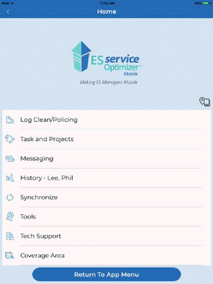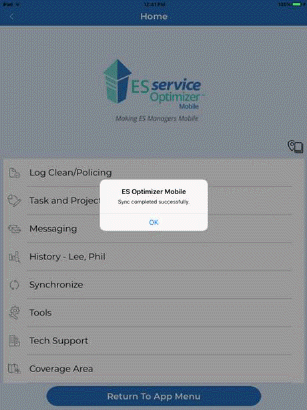 Synchronize – This button synchronizes with data from ES Optimizer. During a synchronization completed and new tasks with be exchanged between ES Optimizer and the mobile application.