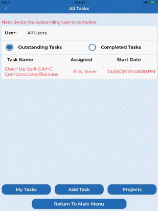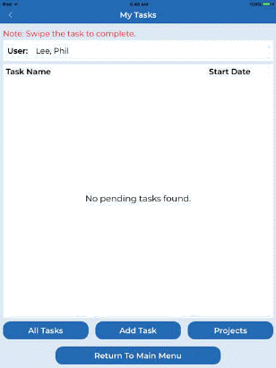 Tasks and Projects – This button shows all tasks to a user (supervisor). The user can still view a complete listing of outstanding tasks and projects. The user can also schedule tasks and projects for other users (employees) as necessary.