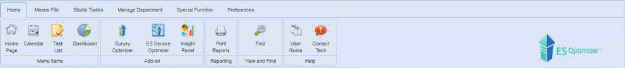The Home Tab contains the Home Page and the Calendar. The Home Page allows the user to schedule tasks or send messages to other ES Optimizer users in the facility. The Calendar allows the user to also schedule tasks and view dates of existing tasks.