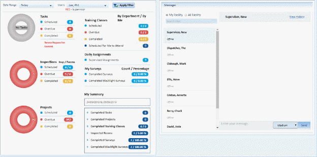 This form allows the user to view various personal items such as tasks Inspections Projects, Training Classes Surveys, and more! The messages functions shows status of users and allows the user to read and send messages to other ES Optimizer users of the same account.