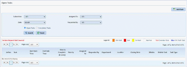 Task List – Clicking on the Task List button opens the Task List page: