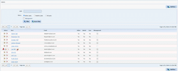 2. Clicking on the Create User option opens the list of users as shown below: