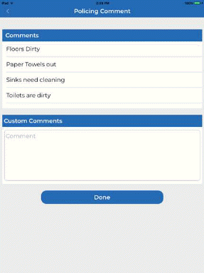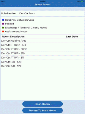 6. Tap on Log Room Policed button when the task is complete. Depending on the room involved, users may have to specify what type of cleaning was performed.