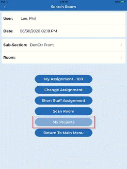 My Projects – This allows the user to see a list of rooms that require project cleaning. This is only applicable if the user is a project worker and has projects assigned to them.