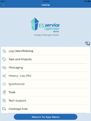 To log out of the application select the “Return to Main Menu” button located at the bottom of most menus. Once you navigate to the main menu you will notice the button change to “Return To App Menu” as shown below: