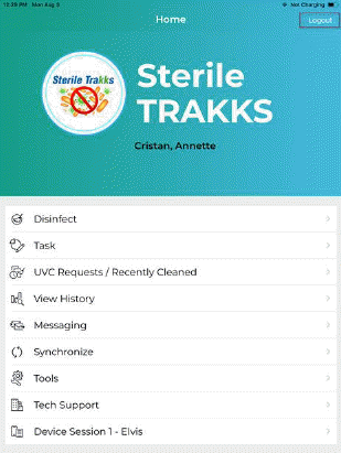 As shown in the upper-right corner of the screenshot below left, click the “Logout” button to logout, then select Log Out from the menu displayed below right.