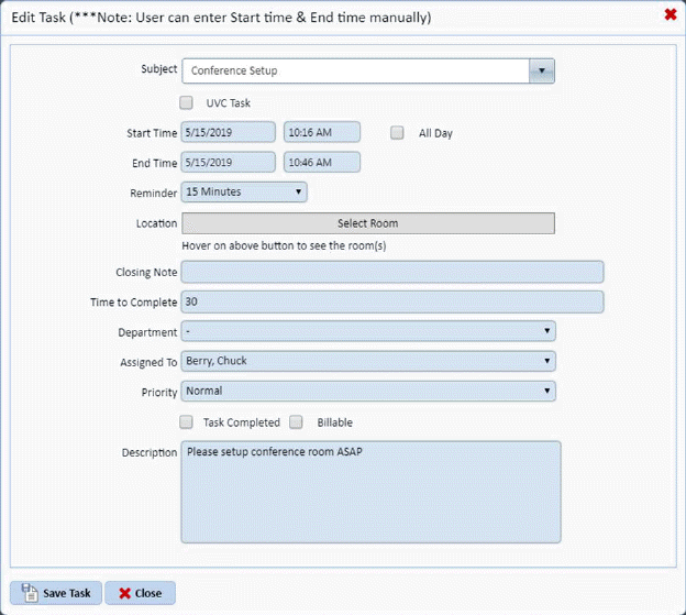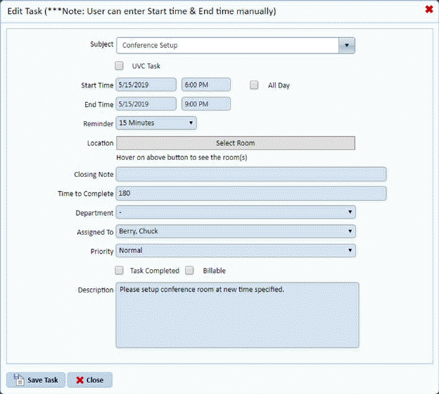 2. Double click on the task displayed and the Edit Task screen will be shown: