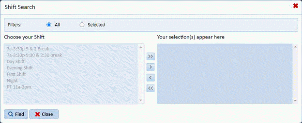 the shift you want to update by clicking on the Find button to receive the figure below: