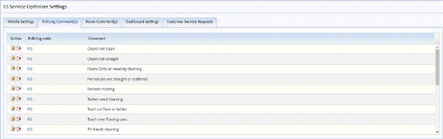 The policing comments are comments the user may select when performing a policing activity in a room. The comments are organized by policing codes. Service Optimizer has provided by default comments for PO (Lobbies and Wait) and RPP (Public Restroom). Any procedure code whereby “Policing = TRUE” is available for policing in Service Optimizer. Simply add the code to the Room Types, apply to the rooms, setup in Policing Comments and you are ready to perform another class of policing in Service Optimizer.