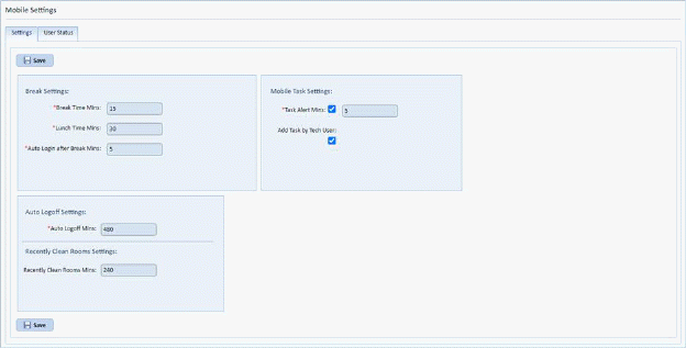 Auto Logoff Settings –In Progress Auto Complete Mins – If the user starts a room and does not log the room is complete it will automatically complete the room after the entered number of minutes.