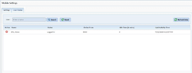 The “User Status” Tab will display the status of users by name including the app they are logged into, Idle time (in mins) and the; last activity date as shown below: