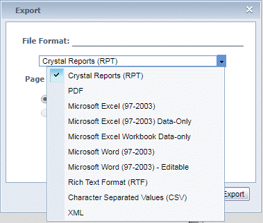 12. The Export button (also highlighted) allows the direct export of the report to any of the formats shown below: