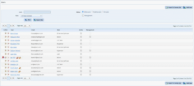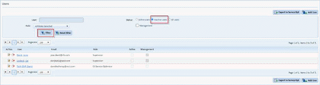2. Select the inactive users radio button and click the “Filter” button to display the list of inactive users: