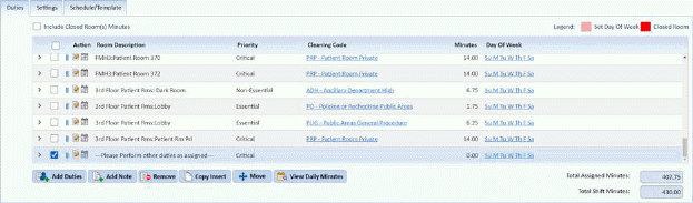 2. Select the note(s) by scrolling through the duty list in the selected assignment and clicking on the checkbox(es) for the Note.