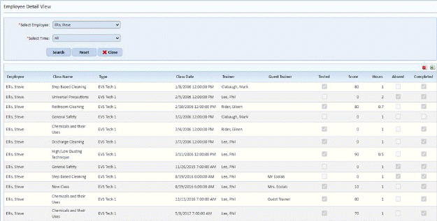 NOTE: No information in the Training Log tab can be updated. The user must make changes to the classes scheduled in the Schedule/Attendance tab.