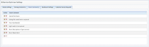 “Room Comments” that become selectable by an EVS technician using Service